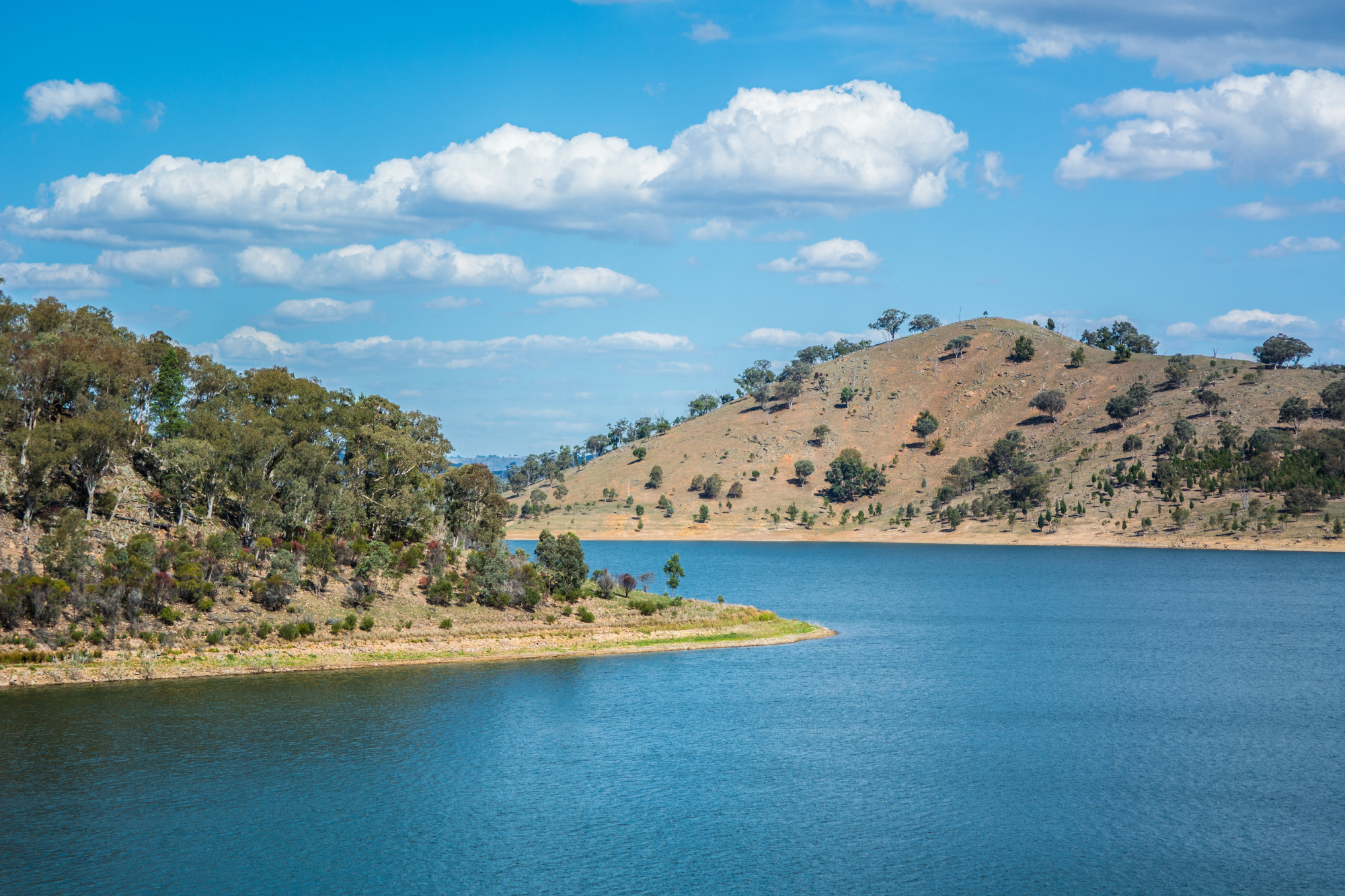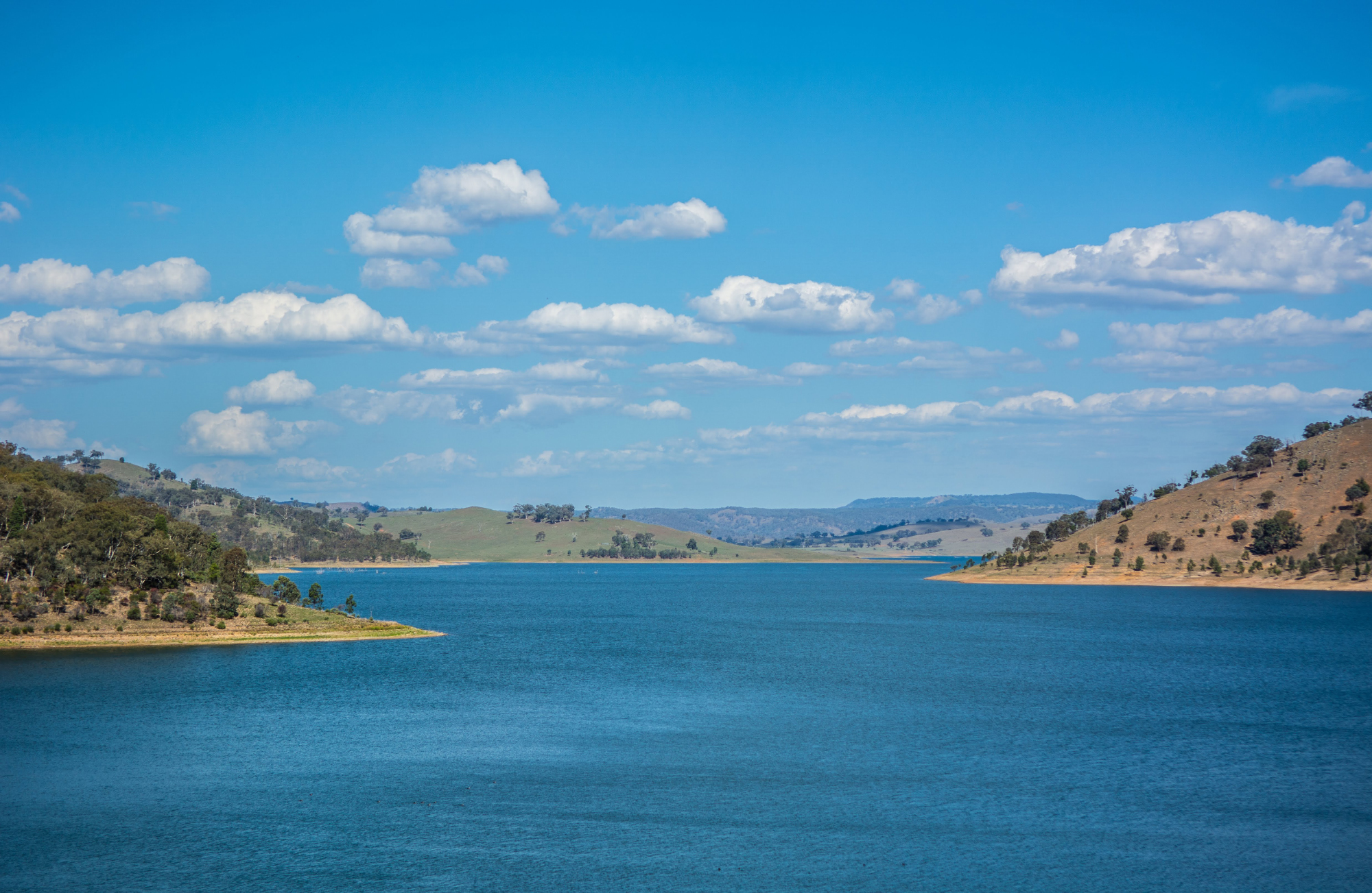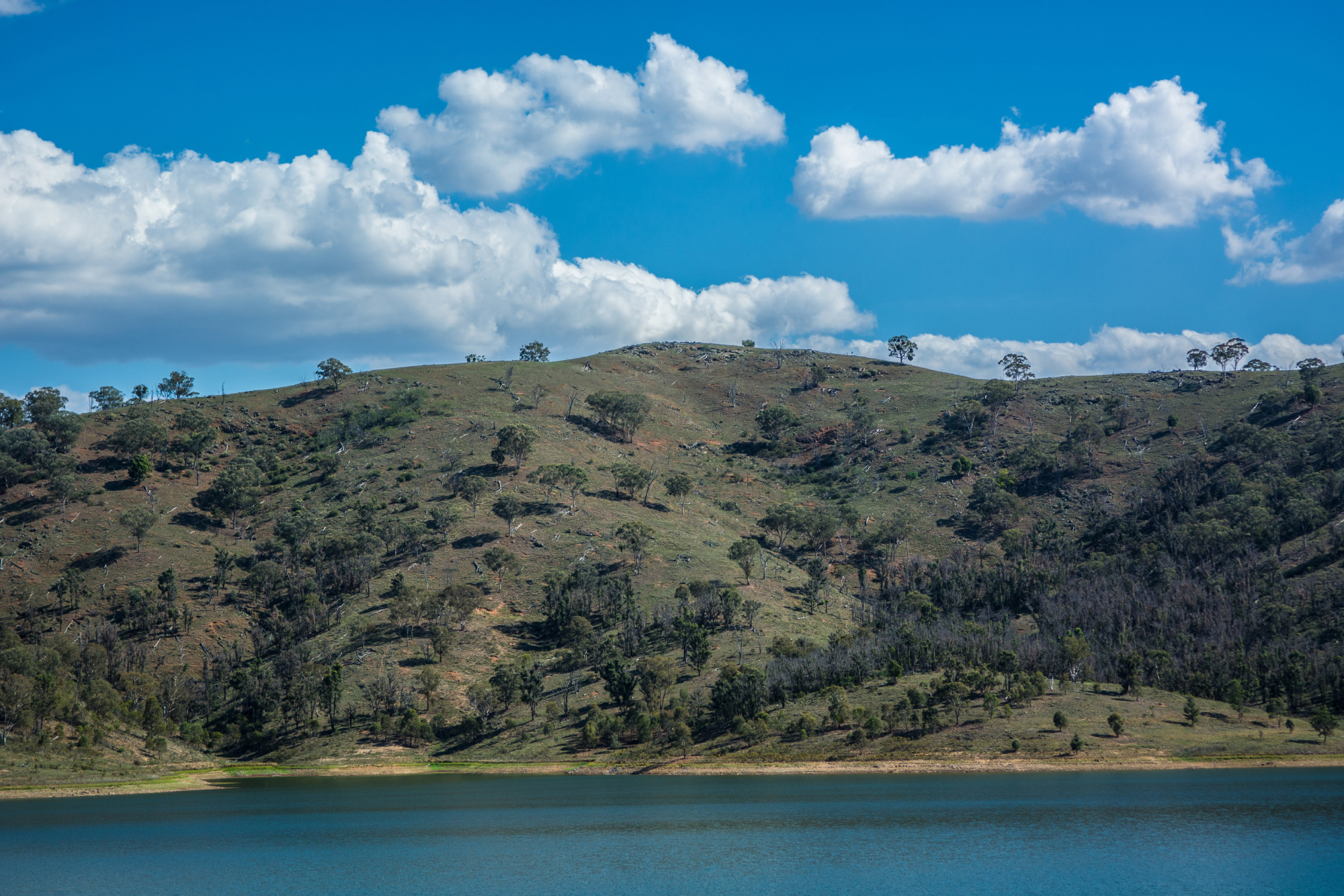 돌아오는 길의 부록, Lake Windamere. 댐을 만드는 바람에 생긴 인공호수!? 특이한 것은 호수 주변의 지형이 울창한 숲은 고사하고 슬쩍보면 파란 민둥산? 전날 저녁, Warrumbungle National Park를 가는 길에 별 사진을 찍으며 낮에 오면 어떨까라는 생각에 돌아가는 길에 들렸는데 역시 예상이 맞았다. 잡목들이 있던 숲을 밀고 목초지를 조성하는 중인 듯한데 낮은 언덕들이 겹겹이 중첩되면서 이색적인 분위기를 만들고 있다. 중간에 차를 세울 장소가 마땅치 않아 눈으로 보고 지나친 곳이 많지만 사진 욕심 버리고 드라이브하며 감상하기 딱 좋은 곳이다.